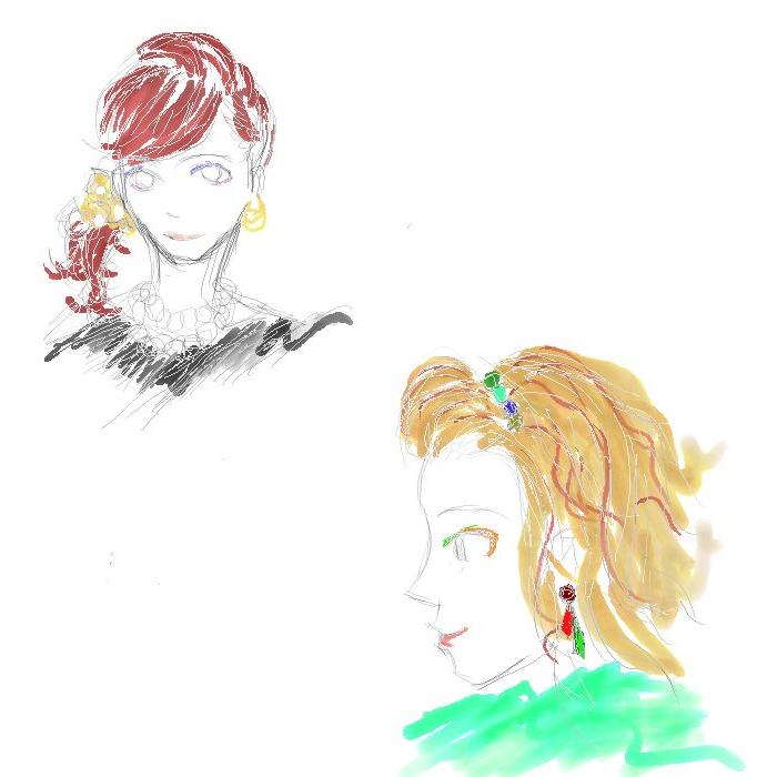 翌朝は気を取り直して下の絵のイメージの髪型にチャレンジしてみました。おでこが広いので顔がいつも以上にでかく見えるので却下になりました。直す時間を考えてなかったので危うく遅刻するとこでした。諦めて普通に下ろして出勤しました。