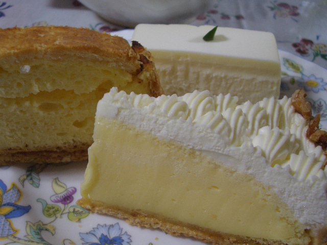 お土産を買ってもらいました♪赤坂と云えば~~「shirotae」のレアチーズケーキ!!!手前からレモンチーズパイ・チーズパイ・レアチーズケーキ でございますvvvも~~このレアチーズはこぶりだけど、こっっってり濃厚で美味しいんですよ(*^_^*)あまりレアチーズって好きじゃないのですがshirotaeのはイケるですよwレモンパイは普通ですwチーズパイは・・・・甘い物が嫌いな人が好きなケーキ?って感じです。