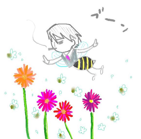 この殴り描きは全く意味がありません。今日お花屋さんに行ったらウサギさんが蜂になった姿がなんの前触れもなくKの頭に浮かんだだけのこと・・・。