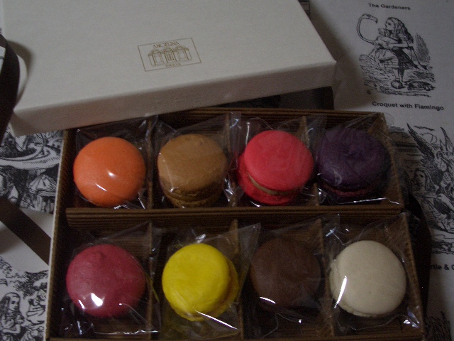 ちょっと遅くなりましたがホワイトデーの事など。皆様は美味しい物を召し上がりましたか?素敵なお返し貰えたですかね?K家では季節限定の「アンジェリーナ」のマカロンを自分の為に自分で購入しました。友人からアンジェリーナの美味しいみたいよ~?って訊いたのでウキウキわくわくしながら買いました!見た目は高さもあってボリュームある外見です。ピンクとイエローがいかにも身体に悪そうで食欲を減退させますwとゆーか全部色が悪いと思いました。・・・・ごめん、このマカロン不味いデス☆メレンゲのとこに厚みがありすぎてサックリした感触なんですよ~;Kはマカロンはサックリねっちりが好みなので、アンジェリーナのはノーセンキュです。今のところは「ラデュレ」・「サダハル アオキ」・「アンリシャルパンティエ」・「鴫立亭」の物が気に入っています♪