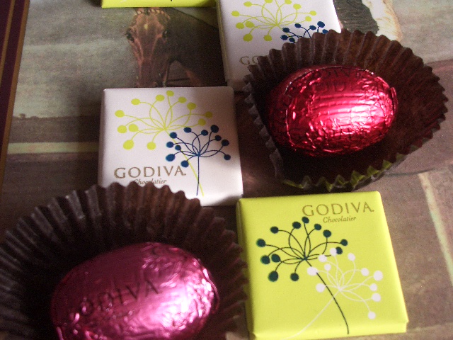 ゴディバのスプリングコレクションから~「リトルエッグ コーヒーミルク(ピンク)・ダークラズベリー(レッド)」と「カレ ミルクココナッツ・ダークバナナ」です!復活祭が近いですもんね~お菓子屋さんではウサギ型や卵型のお菓子が出てきてますね。このコレクションはひよこもあるのですが何故か買わなかったのです;;;いつもなら一通り買うのに・・・しかもひよこちゃん美味しいみたいです。(Nお姉様、情報ありがとうですw)しょぼん;カレのダークバナナがとっても美味しかったですwやっぱりおいしいゴディバなのでした~☆